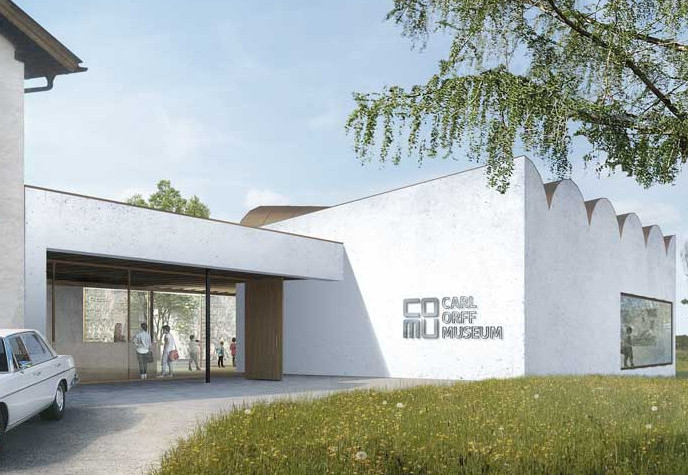 The museum dedicated to the life and work of Carl Orff opens his placeof work and final residence to the public. An extension complements thelisted Orff estate with a residential and work building, a pergola and a landscaped park.This extension has been designed to be unobtrusive in order to preserve the charm of the estate and enhance its effect.The high hall of the special exhibition, with its distinctive barrel vaulted roof, emphasises the address. Inside, clearly structured exhibition rooms offer a variety of views and perspectives within the building and its characteristic surroundings. The concrete ribbed construction is reminiscent of the wooden beam ceilings in the existing building and makes the rooms column-free and therefore versatile. The calm material concept in the interior is characterised by the visible concrete, which is highly thermally insulated, and oak fixtures. In addition, the climate stability of the materials reduces the amount of building services required. The circular route through the entire ensemble is barrier-free.Axel Frühauf, meck architekten